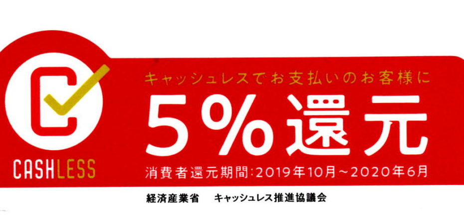 当店「キャッシュレス・消費者還元事業」の対象店舗となり、キャッシュレス決済でお支払いのお客様に5%還元されることとなりました。