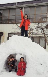 裏庭の屋根から滑り落ちた雪でかまくらを作っていましたが、これは何という構図でしょうか?!