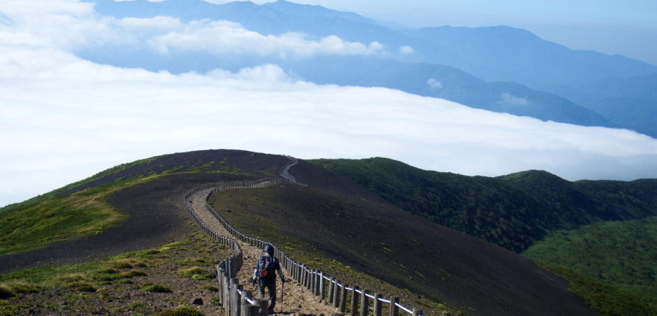 横岳まで登ると、何と岩手県側は一面の熱い雲海の下!