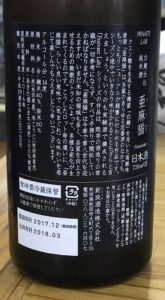 秋田酒こまち100%使用で麹米40%、掛け米60%精米、アルコール15度、その他のスペックは非公開です。
