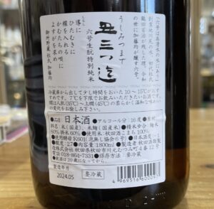 「高清水」(秋田酒類製造)から、秋田県内20店のみの取り扱いとなる限定ブランド「丑三つ迄(うしみつまで)」から「丑三つ迄 六号生酛特別純米(生酒)」 R5BY入荷しています。