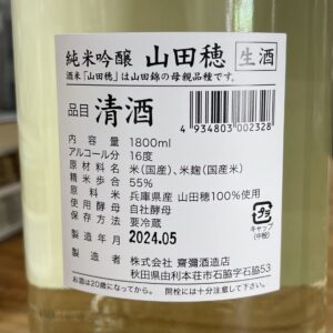 原料米は山田穂55%精米、酸度1,4、日本酒度+3,0、アルコール度16度、酵母は自社酵母で生原酒です。(スペックは昨年参考値)