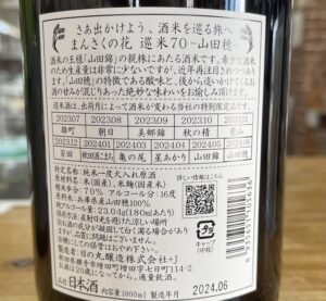 「純米一度火入れ原酒 まんさくの花 山田穂70」