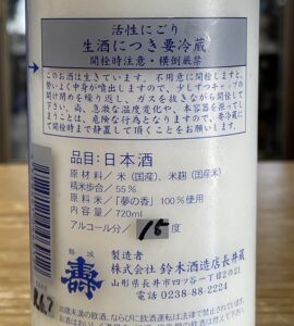 原料米に夢の香55%精米、アルコール15度の原酒、そのほかのスペックは非公開です。