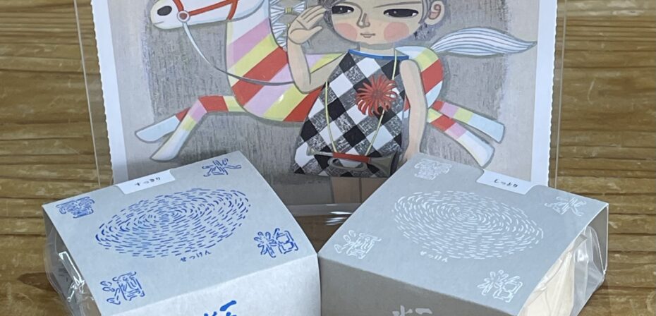 「一白水成」の酒粕と「一白水成」の仕込み水を使用し、2種類のタイプのせっけんができました。