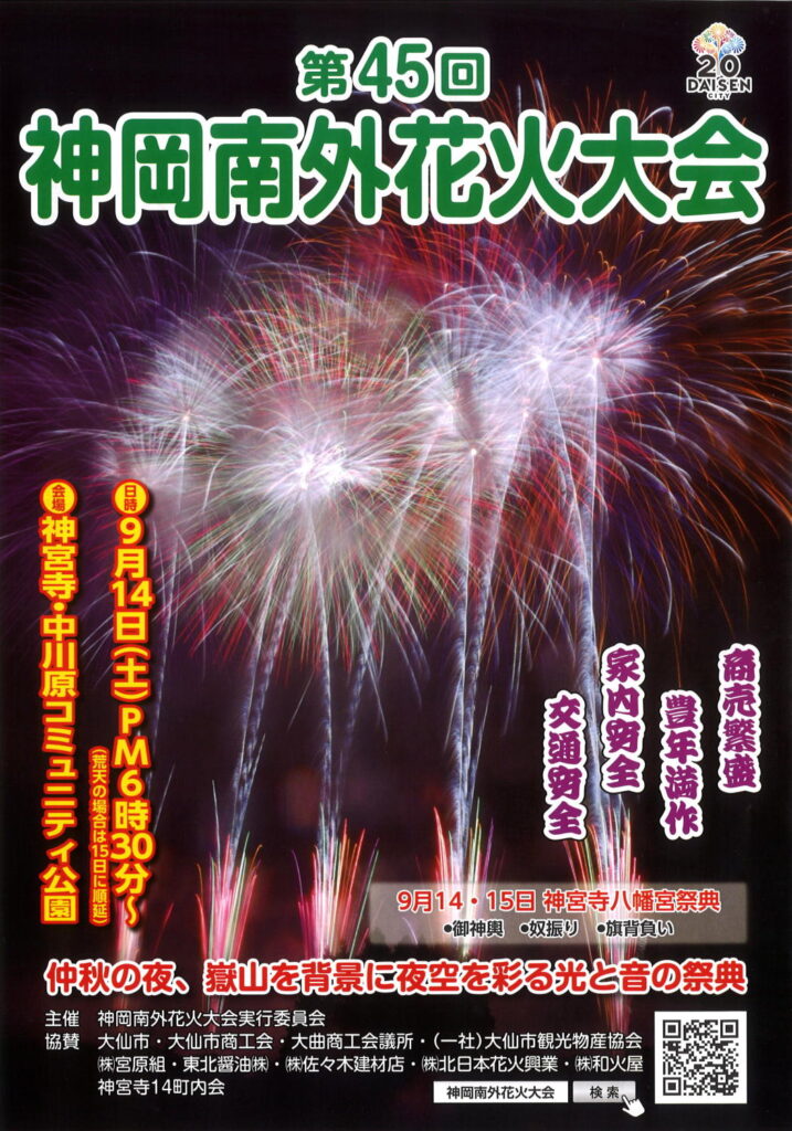 明日9月14日(土)は、当神宮寺地区の八幡神社の宵宮にあたり、恒例の「神岡南外花火大会」が開催されます。