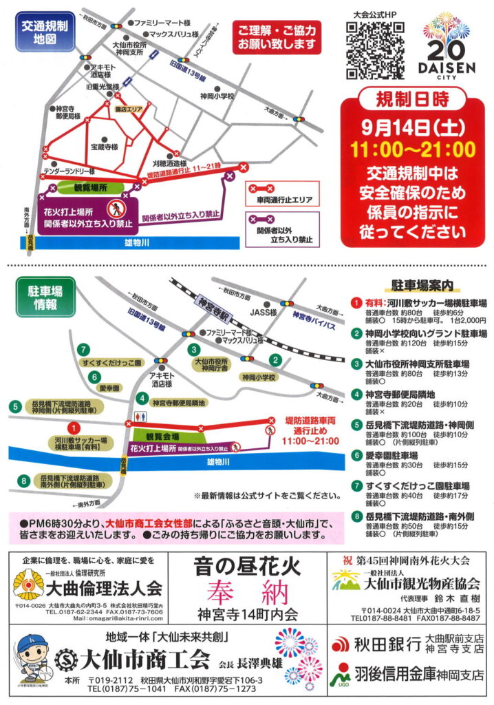 ・9月14日(土) 午前9時~午後11時 (当地祭典宵宮&花火大会)