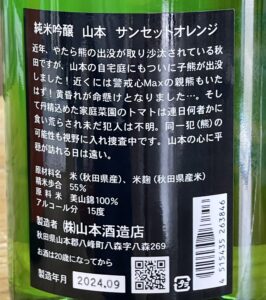 「純米吟醸 山本 サンセットオレンジ」入荷しました!