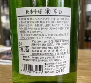 「純米吟醸 裏 翠玉」