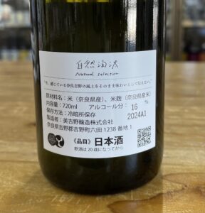 奈良県吉野の里の酒蔵、美吉野酒造「花巴(はなともえ)」から「花巴 自然淘汰2024BY 秋イ」が入荷しました。