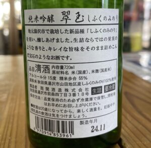 純米吟醸 翠玉 しふくのみのり