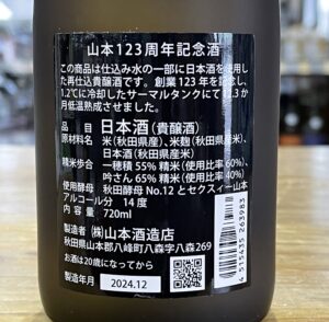 酵母は秋田酵母No.12と蔵付き分離のセクスィ山本です。