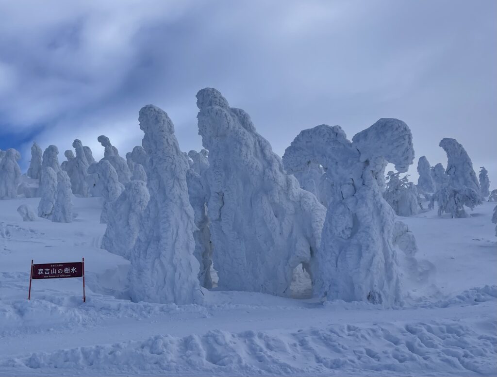 標高1200mはしっかり氷点下で、樹氷も見事に成長していました。
