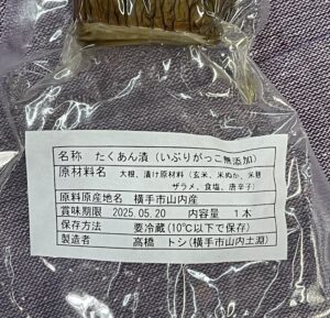 横手市山内地区の高橋トシさん特製の「無添加いぶりがっこ」が届きました!