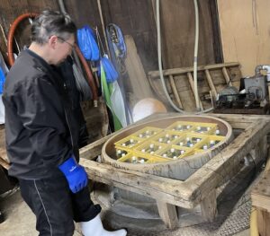 蔵にまわると、先日しぼったばかりの全国新酒鑑評会用のお酒を火入れしているところでした。