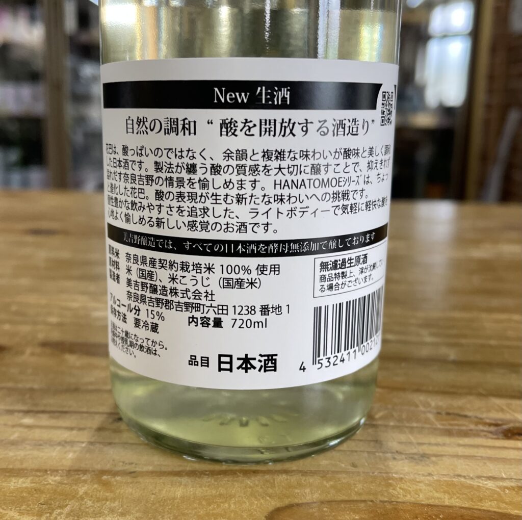 奈良県の美吉野醸造さんから「HANATOMOE “NEW” 生酒 2024BY」