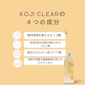 KOJICLEARには、粘膜保護や免疫力を正常に維持するといわれているビタミンB群が含まれていたり、健康促進、美容促進の効果が期待されるクエン酸も含まれています。
