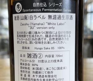 そしてこちらは「玉川 自然仕込み 雑酒(山廃)白ラベル 無濾過生原酒」