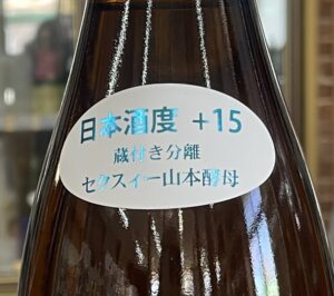 地元産米65%精米、日本酒度+15、アルコール16度、酵母は蔵付分離酵母「セクスィー山本酵母」です。