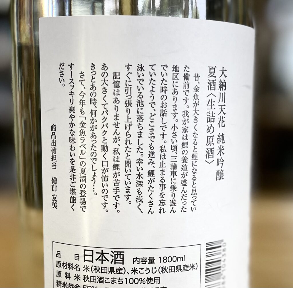 大納川・天花 純米吟醸 無濾過原酒 夏酒(金魚ラベル)