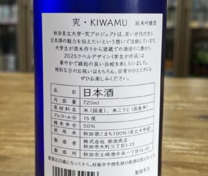 こちらは秋田県立大学との産学協同「銀鱗 純米吟醸 究 KIWAMU」1回火入れ