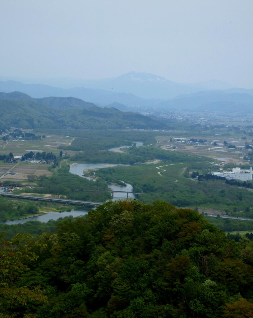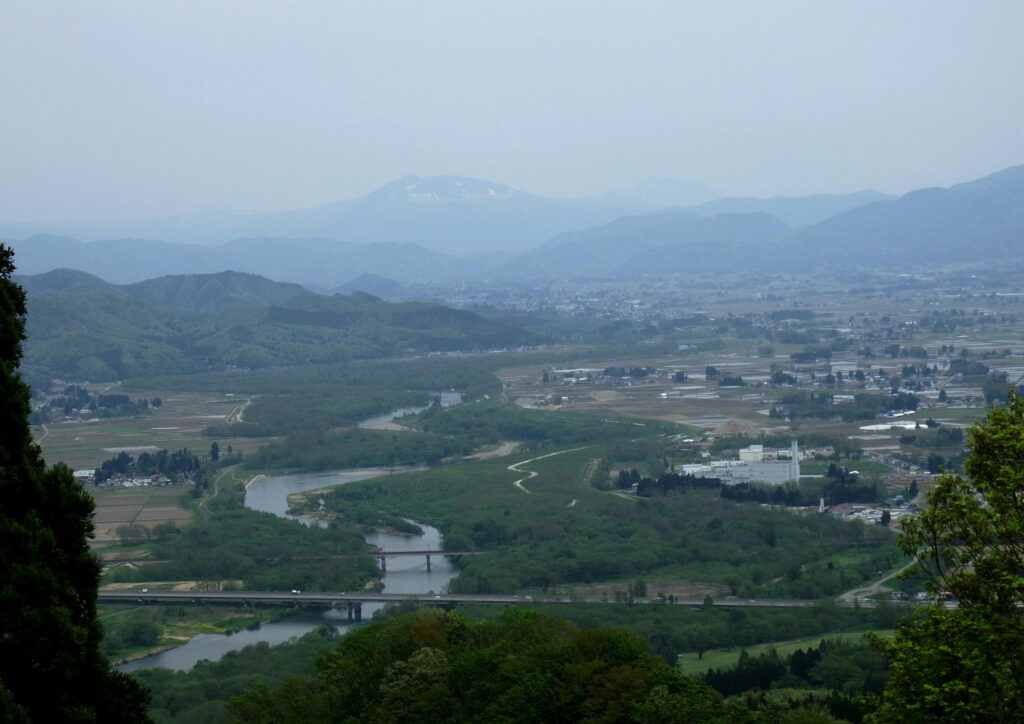 蛇行する玉川の向こうに秋田駒ヶ岳