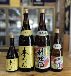 副原料、添加物なしの本物「福来純本みりん」とアミノ酸たっぷりのおいしさに深みの出る「純米料理酒」。