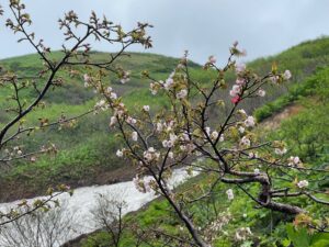 赤倉沢沿いにまだ残るタカネザクラ