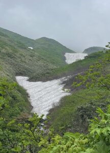 コバイケイソウ越しの雪渓