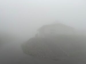 8合目まで戻ってきたら、完全なる霧の中。