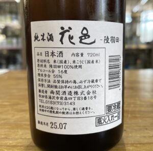 原料米が陸羽田55%精米、酸度1,5,アミノ酸1,0、日本酒度-4,9,アルコール16度、酵母は非公開です。
