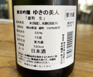 ゆき美にしてもサッパリしているのですが、飲み込むと雄町らしい後出しのキラキラした酸とやさしい旨みが潜んでいます。
