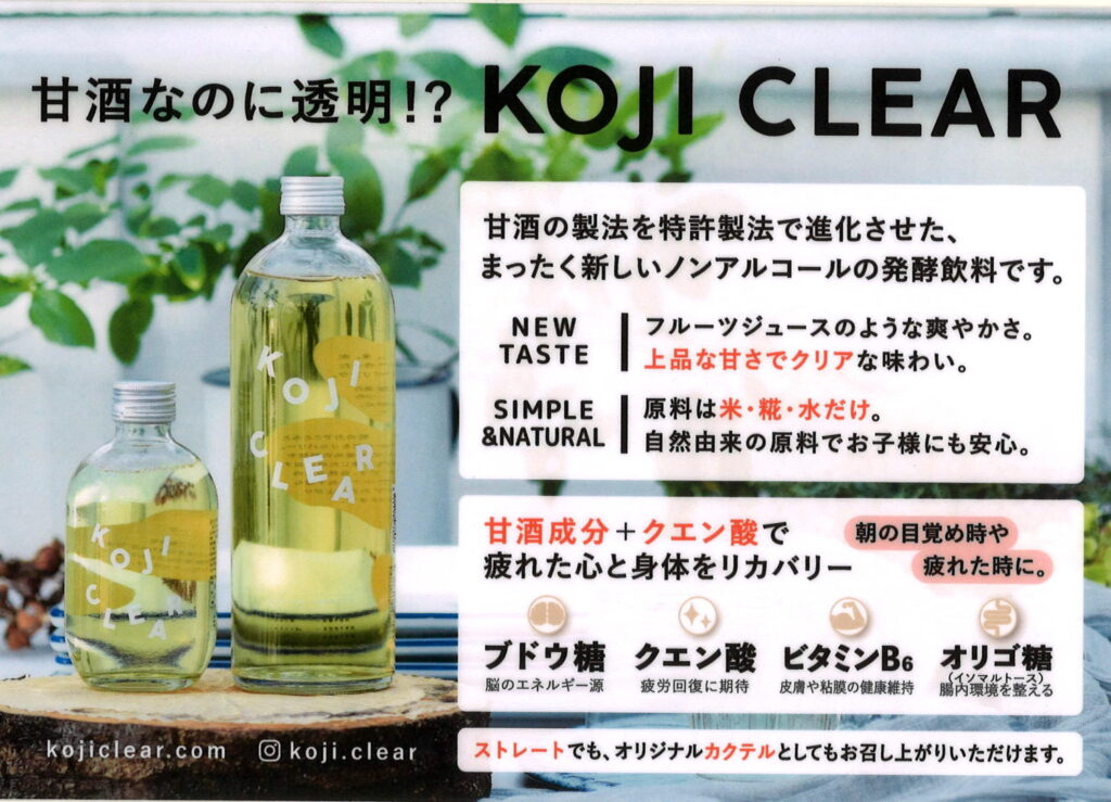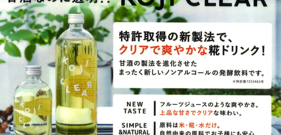甘酒の製法を進化させた「コージクリア」は、全く新しいノンアルコールの発酵飲料です。