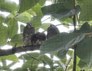 今朝、初めて巣からでた3羽の雛たちを確認できました。