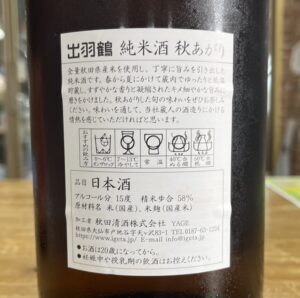 「出羽鶴 純米酒 秋あがり」