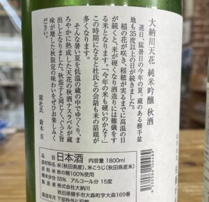 「大納川・天花 純米吟醸 秋酒 茄子ラベル」。