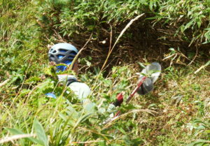 途中、新道コースでコース整備の草刈り隊と遭遇。