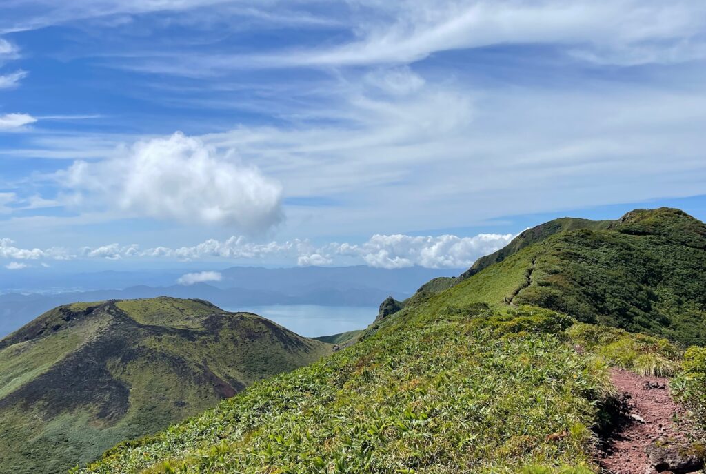 新道から左・乳頭山、右奥に岩手山。
