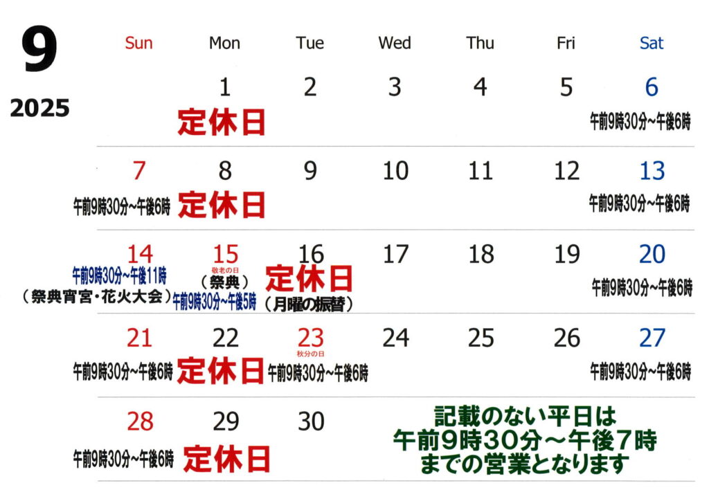 ・土日・祝日は午前9時30分~午後6時の営業となります。
