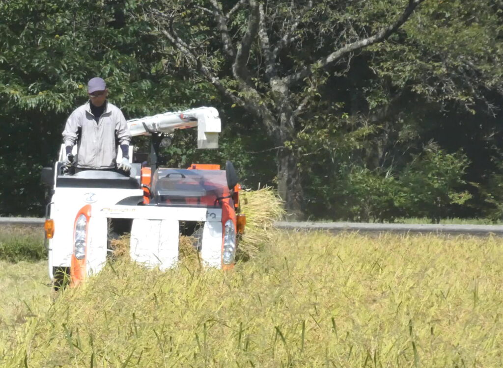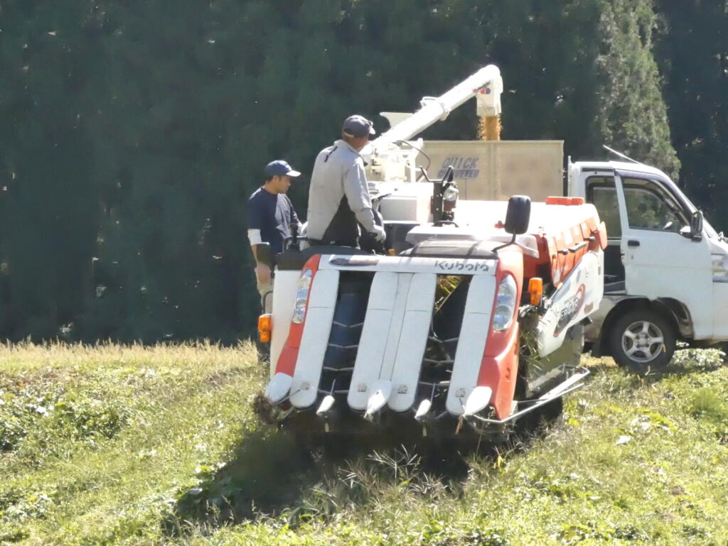 訪ねた昨日22日(月)は自社田2回目の稲刈りで「陸羽132号(通称・愛亀)」の収穫でした。