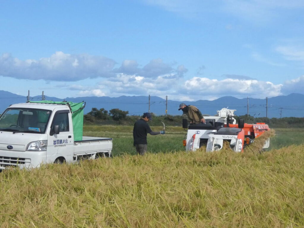 「出羽鶴・刈穂」は大仙市南外地区に数カ所の自社田を保有していて、夏は米作り、冬は酒造りの年間雇用社員3人を中心に、伊藤洋平社長自らも田んぼに出て自社栽培米を育てています。