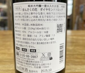 「まんさくの花 ダイヤモンドドロップ 純米大吟醸一度火入れ原酒」