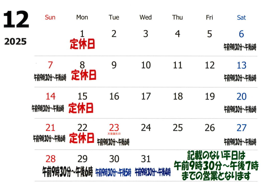 ・12月29日(月)は年末進行で営業させていただきます。(._.)