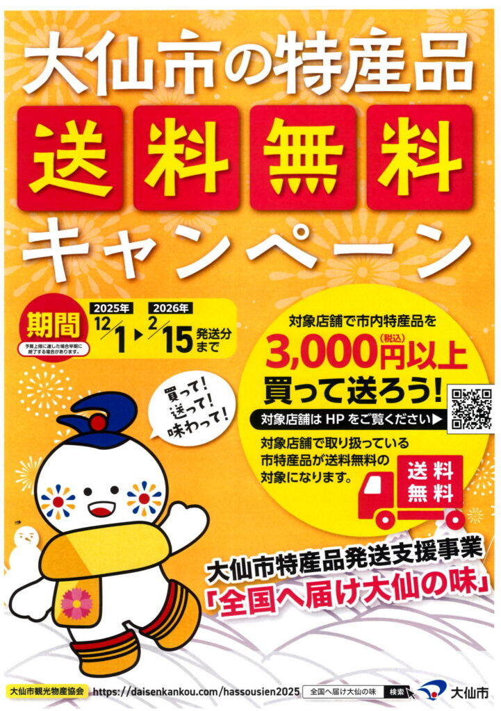 12月1日から『大仙市の特産品 送料無料 キャンペーン』がはじまります。