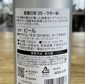 原材料:麦芽(国内製造)、米(千葉県産)、コーンスターチ、ホップ
