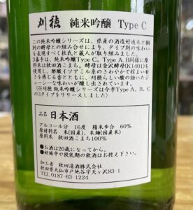 秋田を代表する吟醸蔵で全国に流通している刈穂蔵ですが、このシリーズは全国80店以下の完全限定流通となり、先月は酵母違いのTypeA発売で即完売、12月はTypeCと発売予定です。