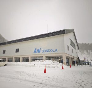 ゴンドラ終着駅下まで雪で視界がきかなくなったので、これは今日は無理しないで完全撤退とすることにしました。