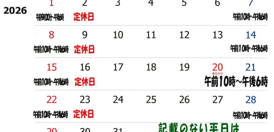 2026年2月・3月の営業について