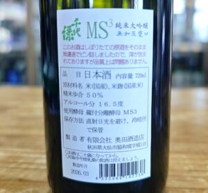 秋田県醸造試験場が秋田県内のさまざまな蔵から採取して分離した酵母が30蔵ほどあるのですが、その中でも最も優秀な蔵付き酵母(私見)と思っているのが、千代綠さんのMS3酵母です。
