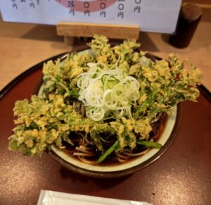 昼食は角館まで戻って、船場龍水庵の春菊天ぷらの冷やがけ。